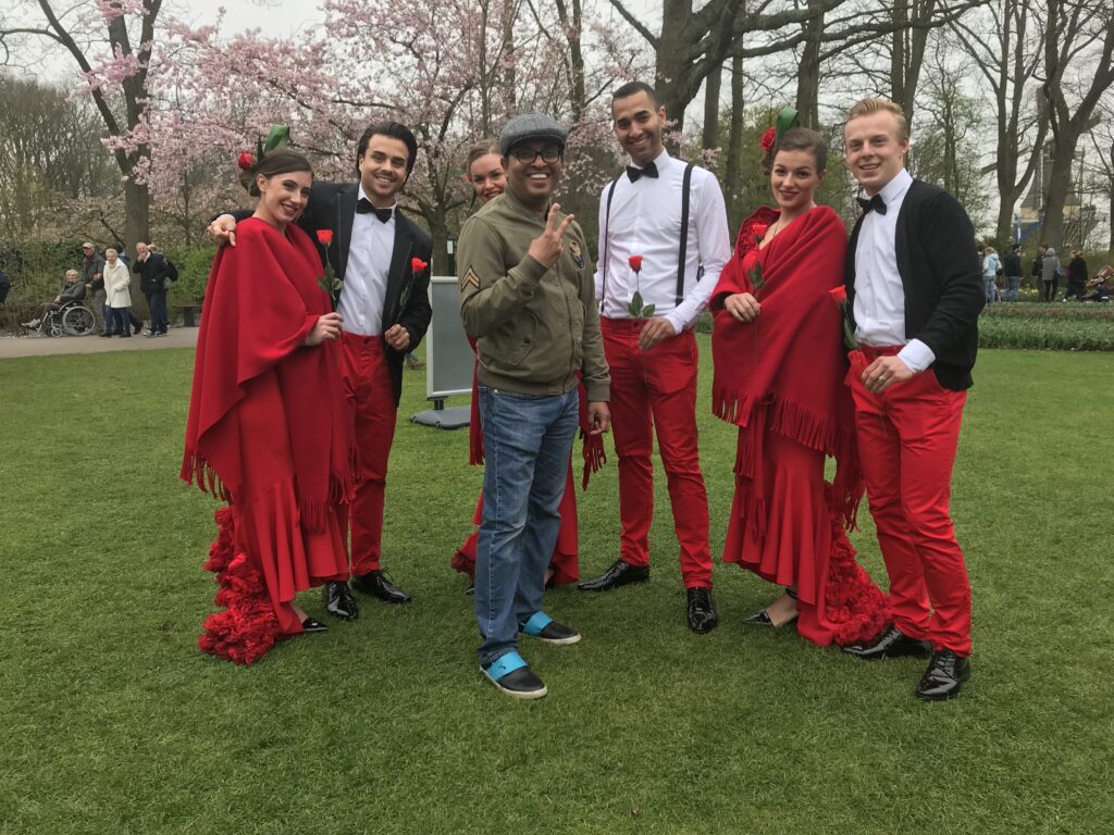 പൂന്തോട്ടത്തിലേക്കു ഞങ്ങളെ വരവേറ്റത് പരമ്പരാഗത ഡച്ച് വേഷം ധരിച്ച യുവതികൾ ആയിരുന്നു.