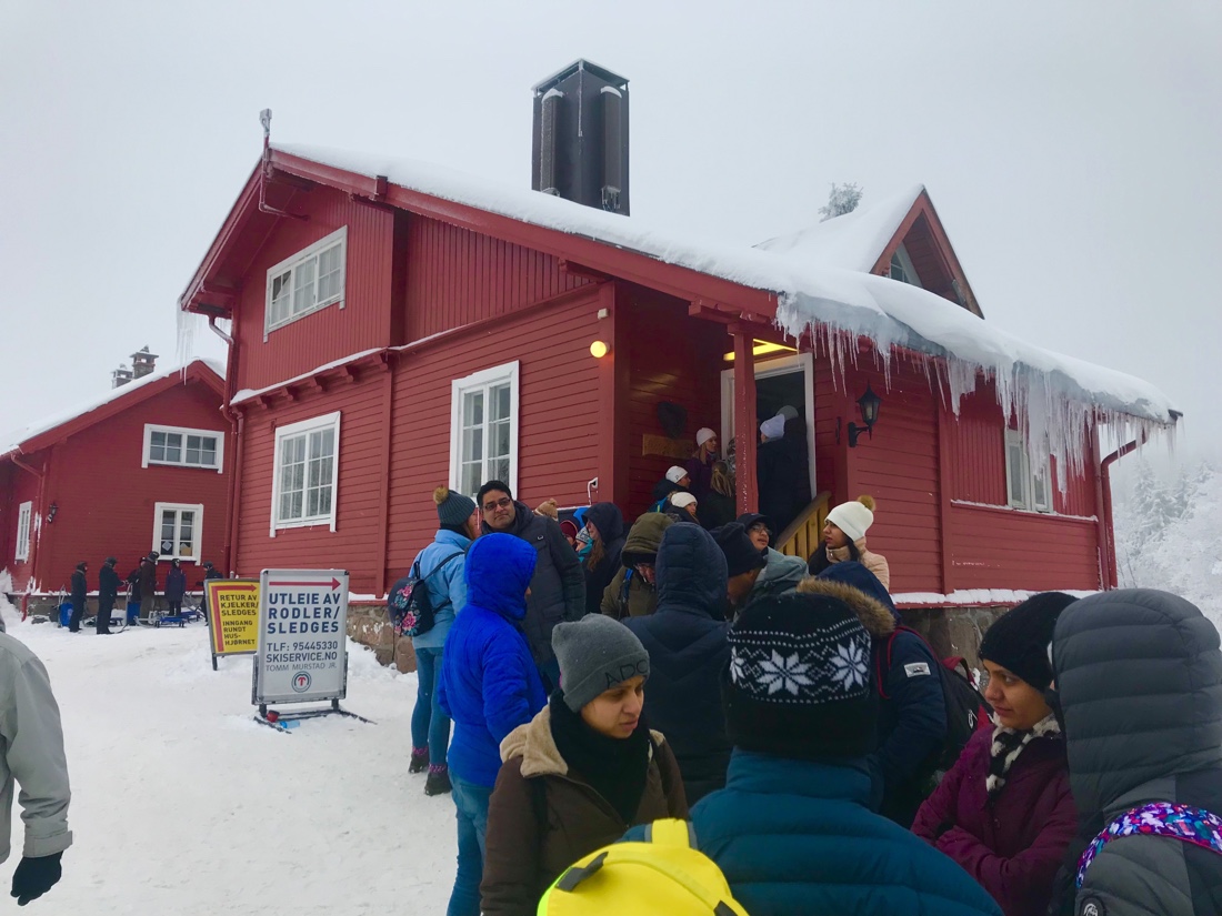 നൂറ്റിയമ്പത് നോർവീജിയൻ ക്രൊനെർ (ഏകദേശം ആയിരത്തി മുന്നൂറു ഇന്ത്യൻ റുപ്പീസ് ) ആണ് ഒരുദിവസത്തേക്കു ഉള്ള വാടക. സ്ലെഡ്ജ് വാങ്ങാൻ ചെന്നപ്പോൾ ഞങ്ങൾക്ക് സ്ലെഡ്ജ് കിട്ടുമോ എന്ന് പോലും ശങ്കയുണ്ടാക്കുന്ന വിധത്തിൽ ഒരു നീണ്ട നിര തന്നെ കാണാമായിരുന്നു. മരം കോച്ചുന്ന ആ തണുപ്പിൽ ഏകദേശം ഒരു മണിക്കൂർ ക്യൂ നിൽക്കേണ്ടി വന്നു പണിയാധുങ്ങൾ കയ്യിൽ കിട്ടാൻ.