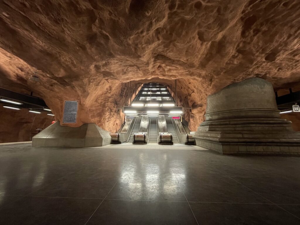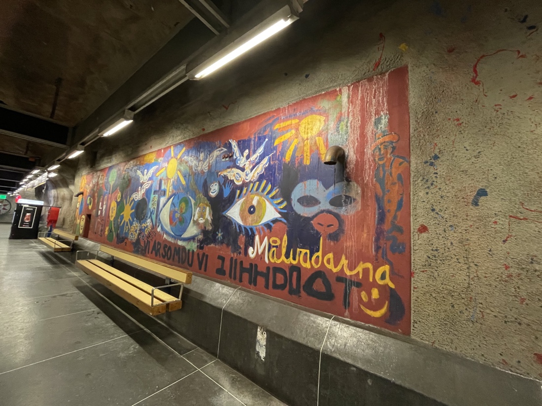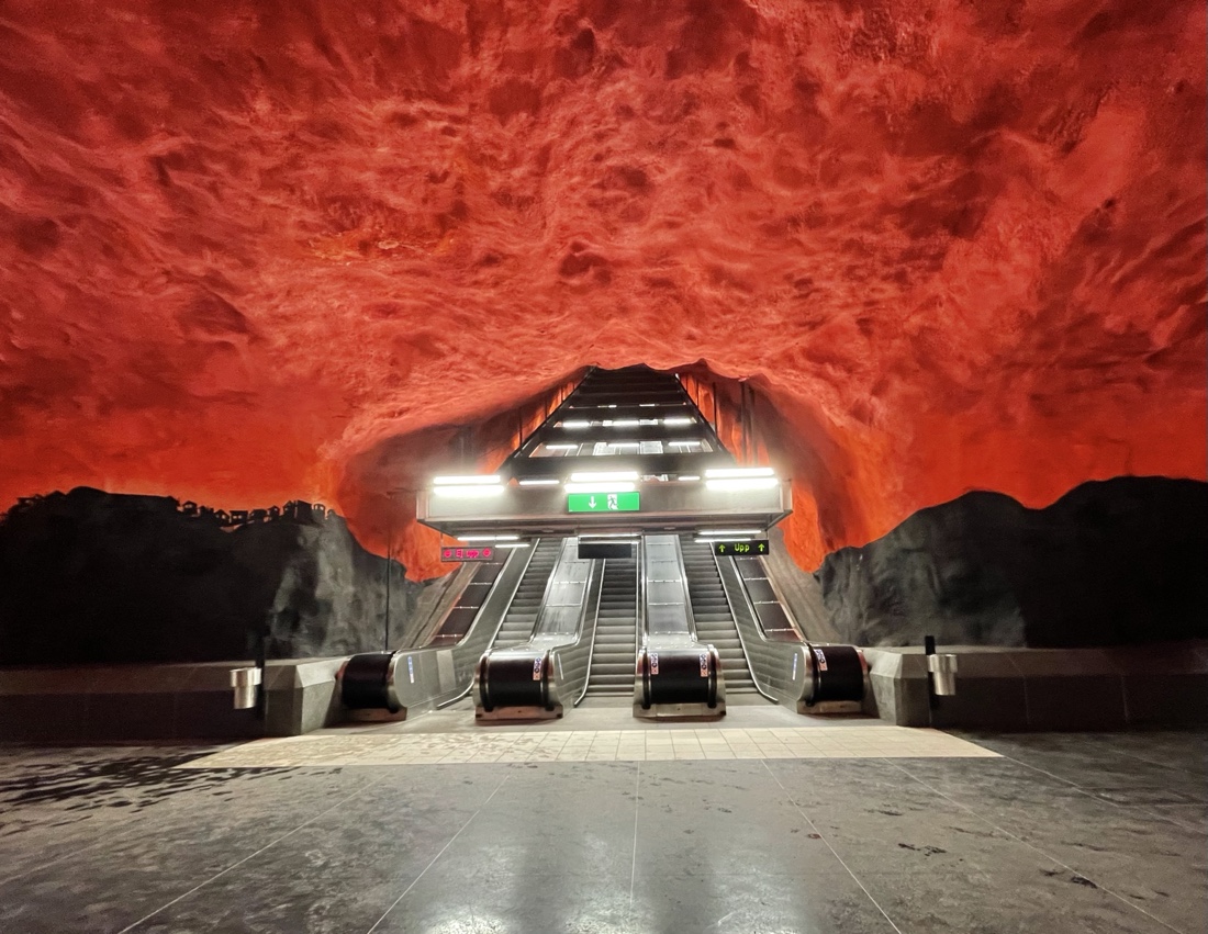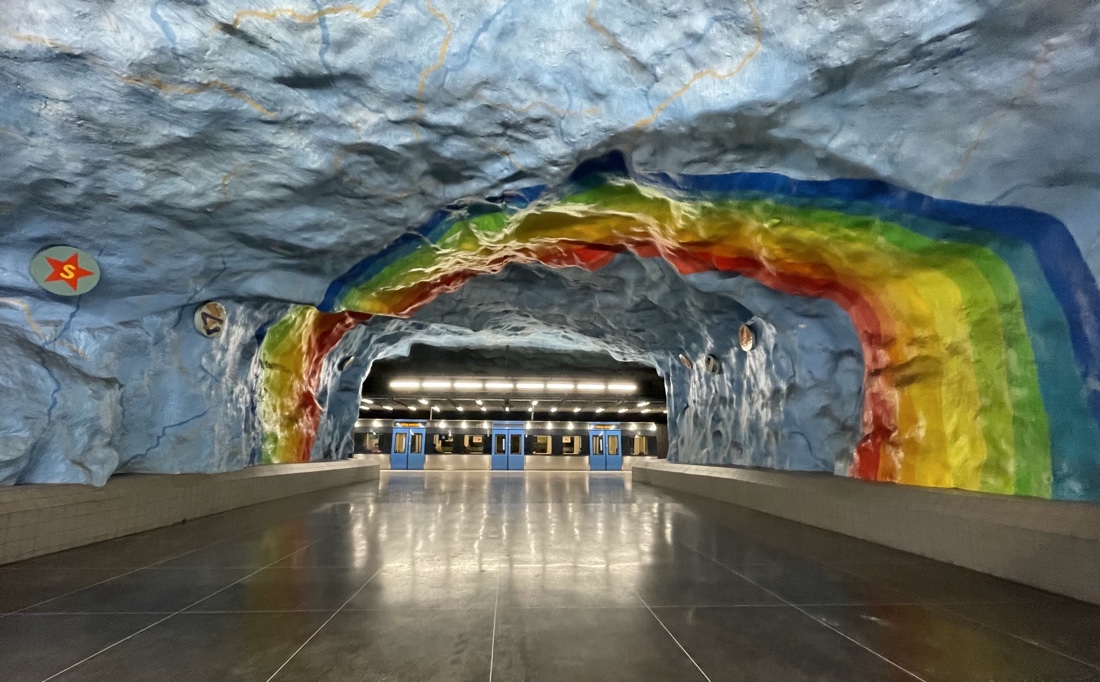 110 കിലോമീറ്റർ നീളമുണ്ട് സ്റ്റോക്ക്ഹോം സബ്വേ സംവിധാനത്തിന് .ഉജ്ജ്വലമായ ചുവർച്ചിത്രങ്ങൾ, രസകരമായ ശിൽപങ്ങൾ, അതിമനോഹരമായ തറ, സീലിംഗ് പാറ്റേണുകൾ എന്നിവകൊണ്ട് സർഗ്ഗാത്മകത നിറഞ്ഞതാണ് 150 ഓളം കലാകാരന്മാരുടെ കലാ നൈപുണ്യം വിളിച്ചോതുന്ന ഈ മെട്രോ സ്റ്റേഷനുകൾ.1950 കൾ മുതലുള്ള ഈ കലാ പരീക്ഷണങ്ങൾ ഏതാണ്ട് തൊണ്ണൂറിലധികം സ്റ്റേഷനുകളിലായി നീണ്ടു കിടക്കുന്നു.