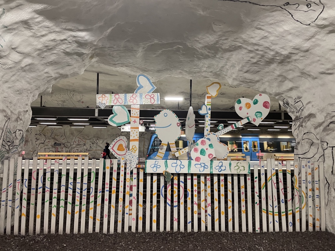 എലിസ് എറിക്സൺ, ഗസ്റ്റ വാൾമാർക്ക് എന്നീ കലാകാരന്മാർ സബ്വേ സ്റ്റേഷൻ മോഡി പിടിപ്പിക്കുമ്പോൾ അവരുടെ കുട്ടിക്കാലവും അതുപോലെ അവരുടെ മക്കളുടെ കുട്ടിക്കാലവും മനസ്സിൽ കണ്ടുകൊണ്ടാണ് തങ്ങളുടെ ജോലി തുടങ്ങിയത്. ഈ സ്റ്റേഷൻ മുഴുവൻ കുട്ടികൾ വരച്ച ചിത്രങ്ങൾ കൊണ്ട് മോഡി പിടിപ്പിച്ചിരിക്കുന്നു. അവയിൽ പലതും ആർട്ടിസ്റ്റുകൾ അവരുടെ കുട്ടിക്കാലത്തു വരച്ചതും അതുപോലെ അവരുടെ മക്കളുടെ വരകളുമാണ് എന്നത് യാദൃശ്ചികം മാത്രം.
