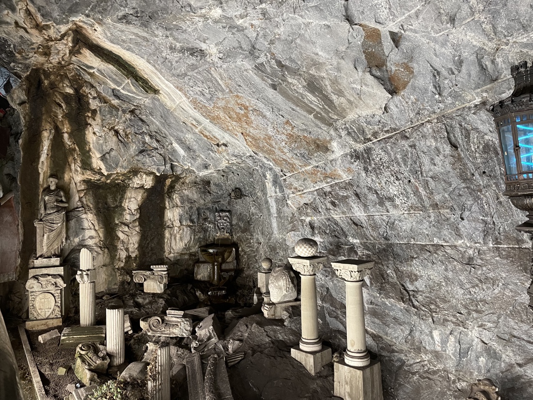 പതിനേഴാം നൂറ്റാണ്ടിൽ ഈ സ്റ്റേഷന്റെ തൊട്ടു മുകളിൽ സ്ഥിതിചെയ്തിരുന്നതും പിന്നീട് അഗ്നിക്ക്കിരയായതുമായ Makalös കൊട്ടാരത്തിന്റെ അവശിഷ്ടങ്ങളിൽ കണ്ടെടുത്ത പല ശില്പങ്ങളും ആർട്ടിസ്റ്റ് ഈ സ്റ്റേഷൻ നവീകരിക്കാൻ ഉപയോഗിച്ചിട്ടുണ്ട്.
