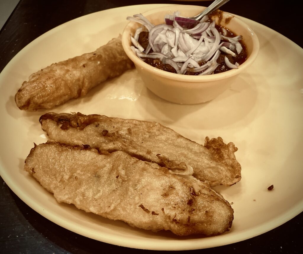 “ആരേ ഭായ് ഏക് പ്ലേറ്റ് പഴംപൊരി ബീഫ് ലാവോ ” എന്ന് പറയാൻ ഹിന്ദി അറിയില്ലേലും ബിരുദം വരെ ഹിന്ദി പഠിച്ചതു ധാരാളം മതിയായിരുന്നു .പറയേണ്ട താമസം , ഒരു പ്ലേറ്റിൽ മൂന്ന് പഴംപൊരിയും ഒരു പ്ലേറ്റ് ബീഫും വന്നതും ഞങ്ങൾ തീറ്റ ആരംഭിച്ചിരുന്നു.