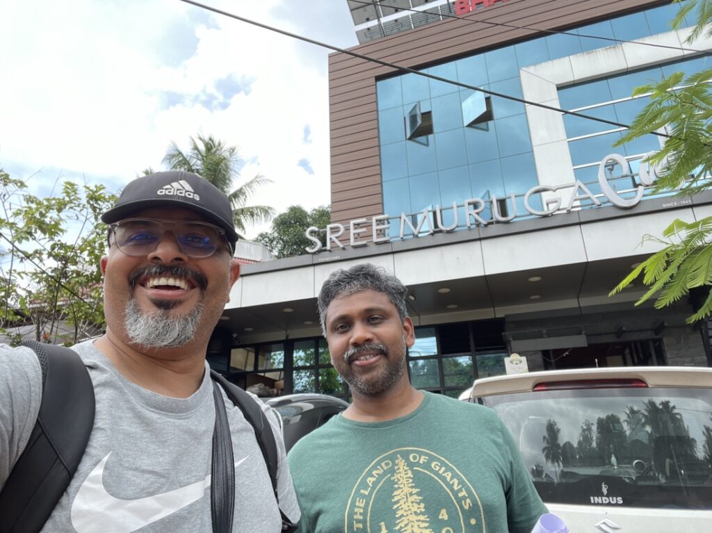 പഴംപൊരിയും ബീഫും ഇത്വരെ കഴിച്ചിട്ടില്ല എന്ന വിഷമം തീർക്കാൻ ആണ് തൃപ്പൂണിത്തുറ ശ്രീ മുരുകാ കഫെയിൽ ചെന്നത്. കൂടെ ഇരുപത് വർഷങ്ങൾക്ക് മുൻപ് കൂടെ ജോലി ചെയ്തിരുന്ന അനീഷ് ചന്ദ്രനും.
