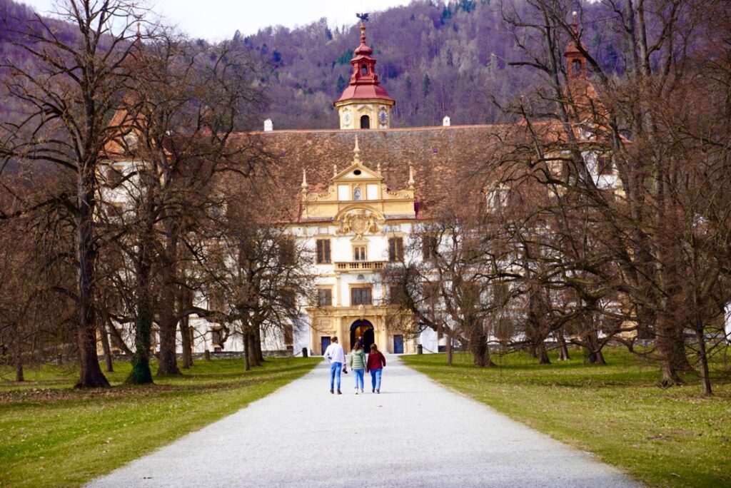 ഗ്രാസിന്റെ നഗര കേന്ദ്രത്തിൽ നിന്ന് മൂന്ന് കിലോമീറ്റർ പടിഞ്ഞാറ് ഒരു കുന്നിൻ ചരുവിലുള്ള എഗ്ഗൻബെർഗ് കൊട്ടാരം ഗ്രാസ്സിലെ മനോഹര കാഴ്ചകളിൽ ഒന്നാണ്.