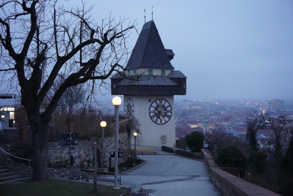 ഞാൻ ഗ്രാസ്സിൽ എത്തുന്നത് വൈകുന്നേരം നാല് മണിക്കാണ്. മഞ്ഞു മൂടിയ ആ സായാഹ്നത്തിൽ ആദ്യം പോയത് മനോഹരമായ ഷ്ലോസ്ബർഗും ക്ലോക്ക് ടവറും കാണുവാനാണ് .