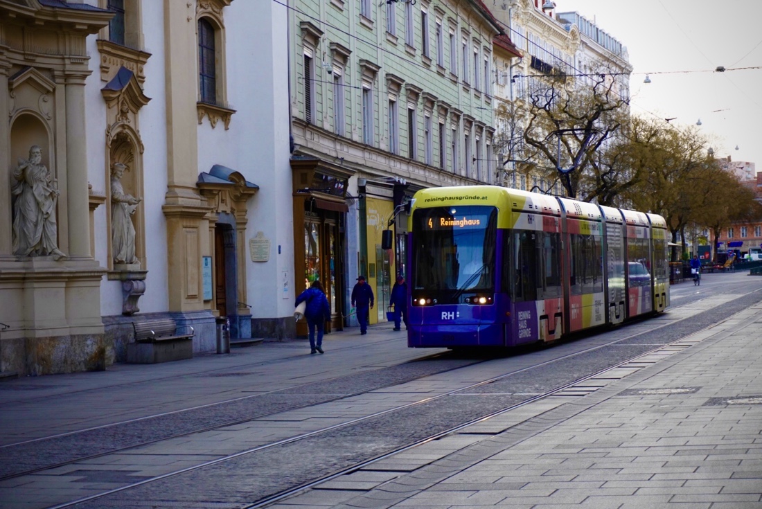 ഗ്രാസ്സിൽ ആകെയുള്ളതു ഒരു ദിവസമാണ്. ഓസ്ട്രിയയിലെ മനോഹര ഗ്രാമമായ ഹാൾസ്റ്റാറ്റിലേക്കു പോകുന്ന വഴിയിലെ ഒരു ഇടത്താവളമാണ് ഗ്രാസ്. ഈ വർഷത്തെ ടൂറിസം സീസൺ ഇനിയും ആരംഭിക്കാത്ത ഗ്രാസ്സിൽ പല പ്രധാന കാഴ്ചകളും വാർഷിക അറ്റകുറ്റ പണികൾക്കായി അടച്ചിട്ടിരിക്കുകയാണ്. യൂറോപ്പിലെ വേനൽകാലമായ ജൂൺ മുതലാണ് ഗ്രാസ് സന്ദർശിക്കാൻ മികച്ച സമയം. രണ്ടാം ദിവസം രാവിലെ തന്നെ എഴുന്നേറ്റു ഗ്രാസ് പട്ടണത്തിന്റെ മറ്റു കാഴ്ചകൾ കാണുവാൻ നടന്നു.